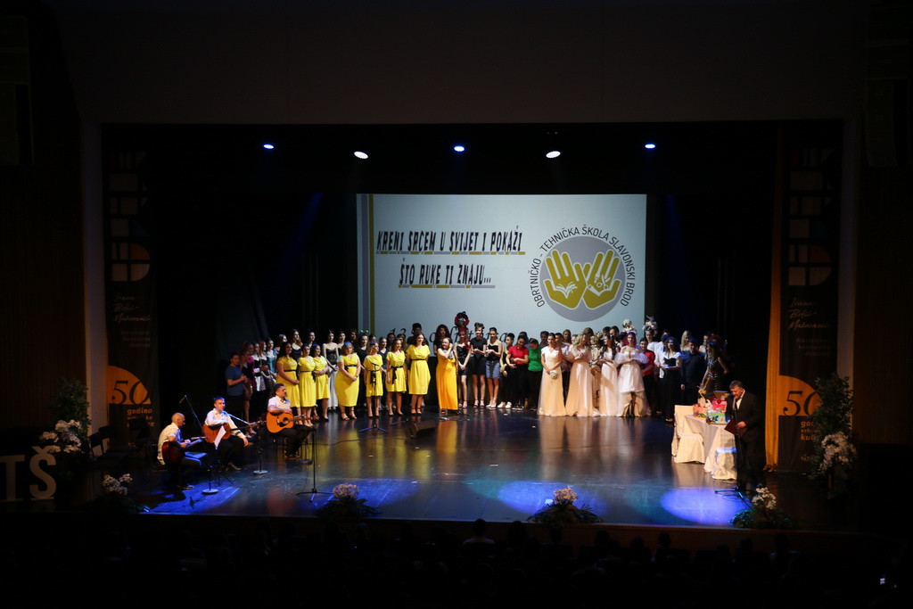 Svečanim programom u Kazališno-koncertnoj dvorani Ivana Brlić-Mažuranić Obrtničko-tehnička škola Slavonski Brod proslavila je 135. obljetnicu postojanja škole. Povodom Dana škole, u predvorju Kazališno koncertne dvorane održana je izložba učeničkih radova, a potom je održan i glazbeno-scenski program. Učenici Obrtničko-tehničke škole predstavili su se okupljenima i s dvjema modnim revijama.